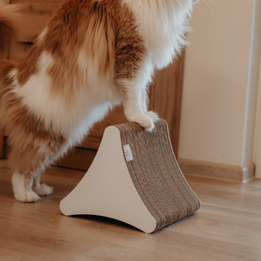Vyrobeno ze 100% recyklovatelného, pevného kartonu – šetrné k přírodě a odolné vůči kočičím náletům.